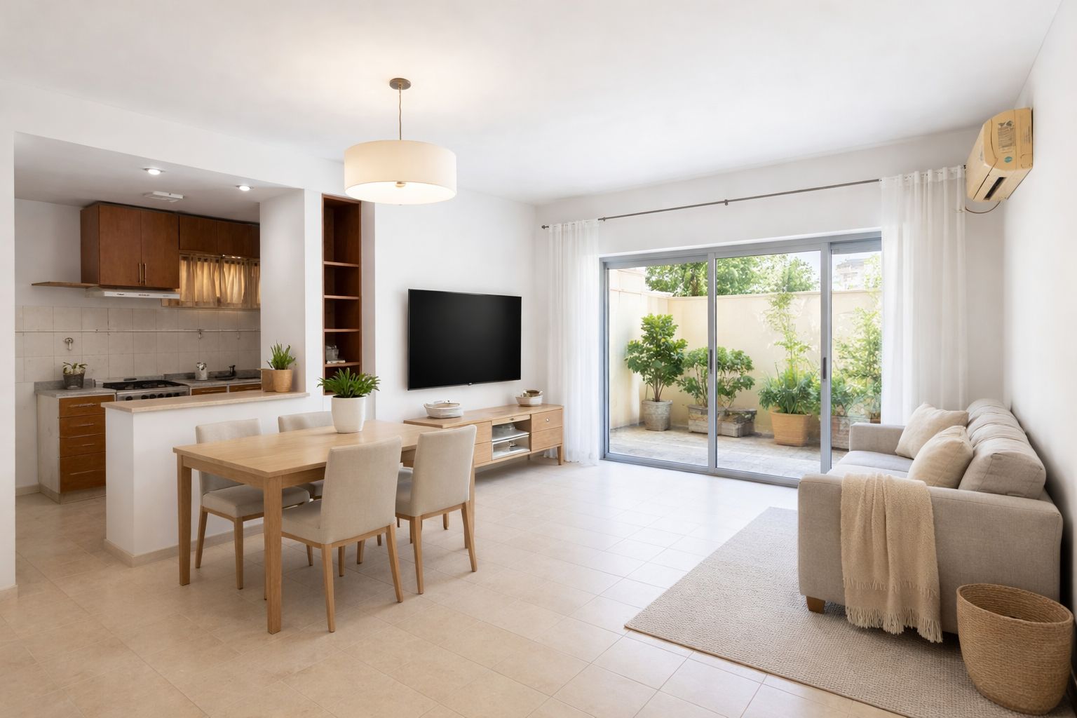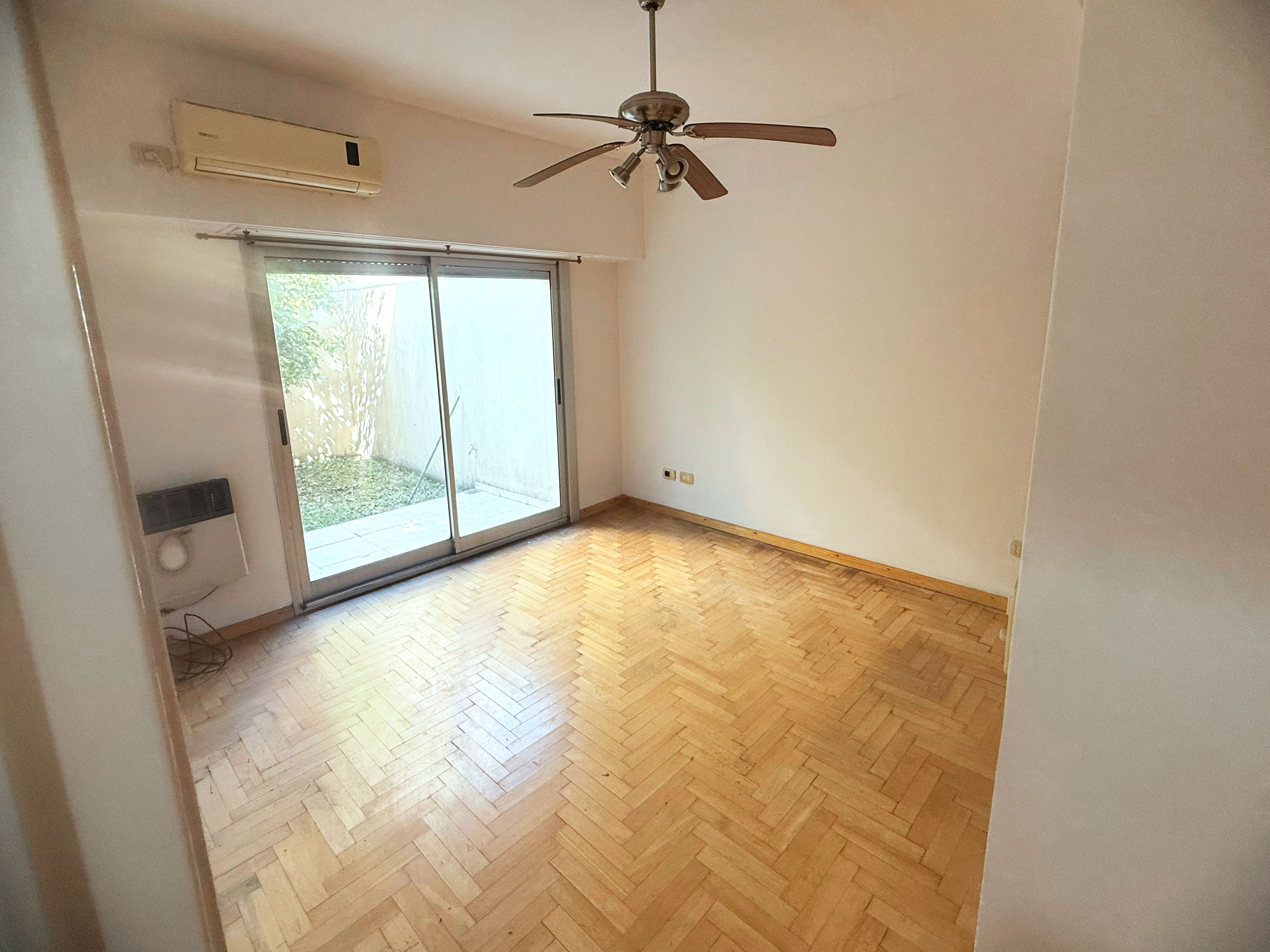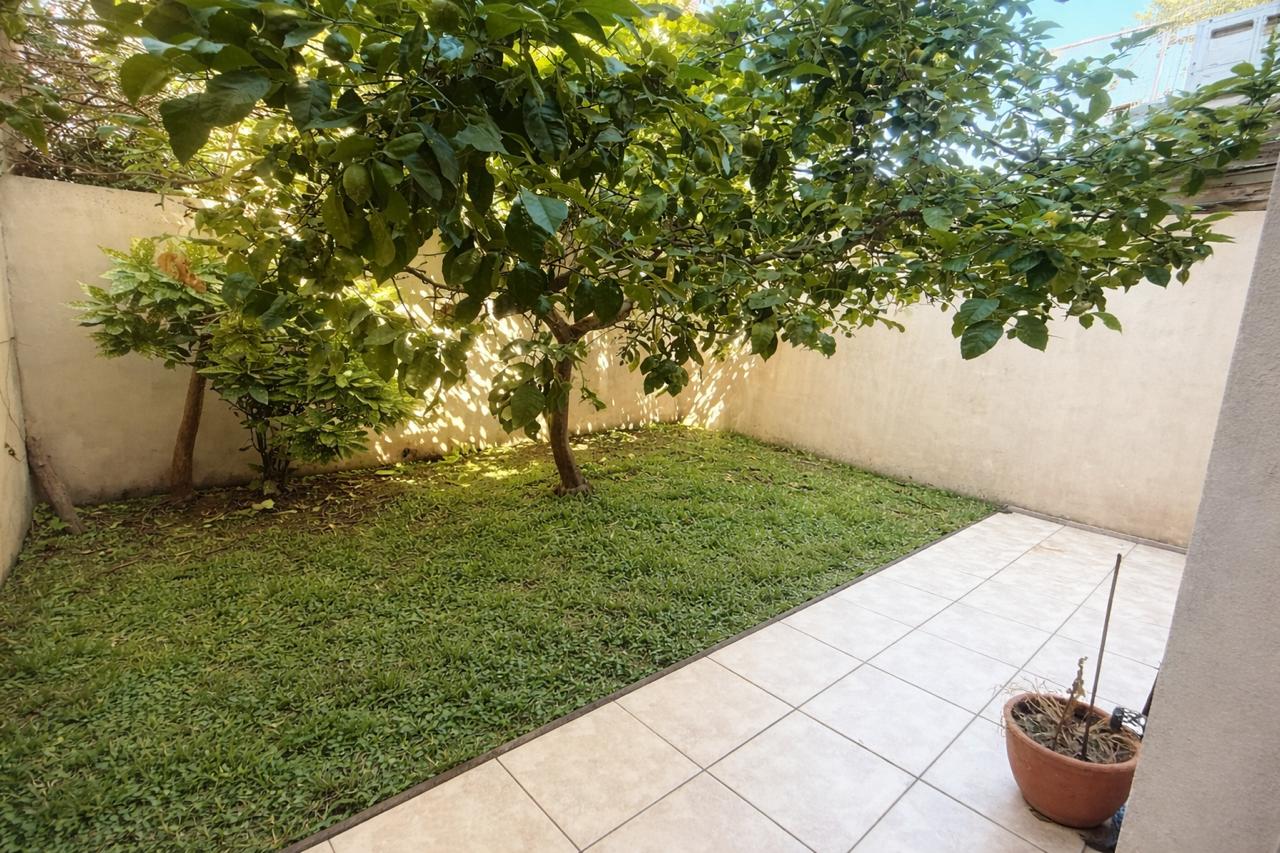 Planta baja. Primerísima calidad de construcción. Impecable excelente. Estar comedor, con la cocina semi integrada con barra. Dos dormitorios con pisos de parquet y placares con interior completo. Lavadero independiente. Baño completo. Todos los ambientes poseen puertas ventanas con persianas de aluminio anodizado. Cuenta con dos patios privados del departamento, uno de ellos con parrilla. Cochera techada, con acceso por portón automatizado. --- APTO CREDITO ---- Superficie cubierta del departamento: 65 m2 Superficie de los patios: 40 m2 Superficie de la cochera: 13,5 m2