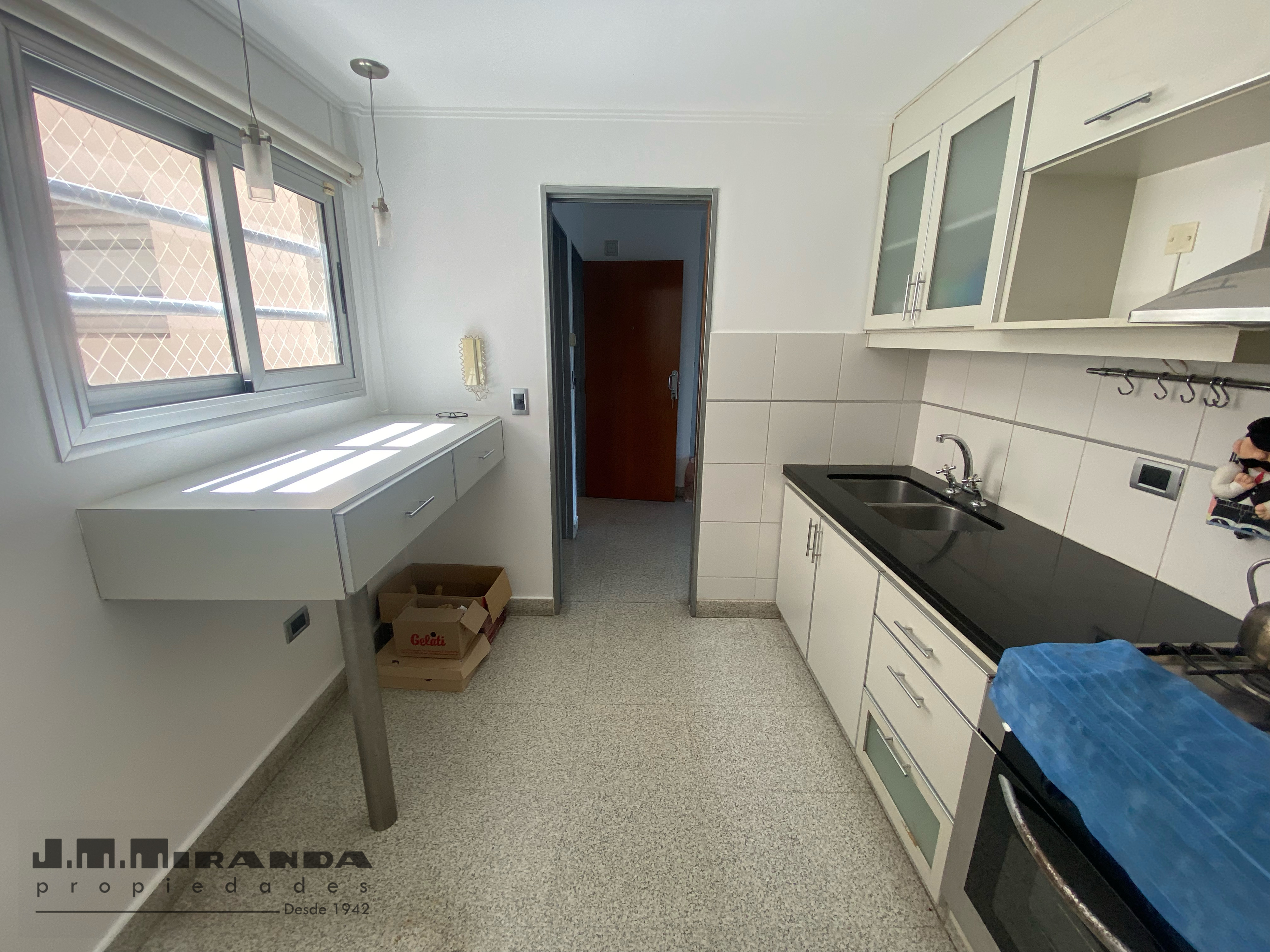 Edificio de planta baja y tres pisos en dos torres; 9 departamentos: 3 pisos de tres dormitorios y 6 pisos de un dormitorio. Cocheras.