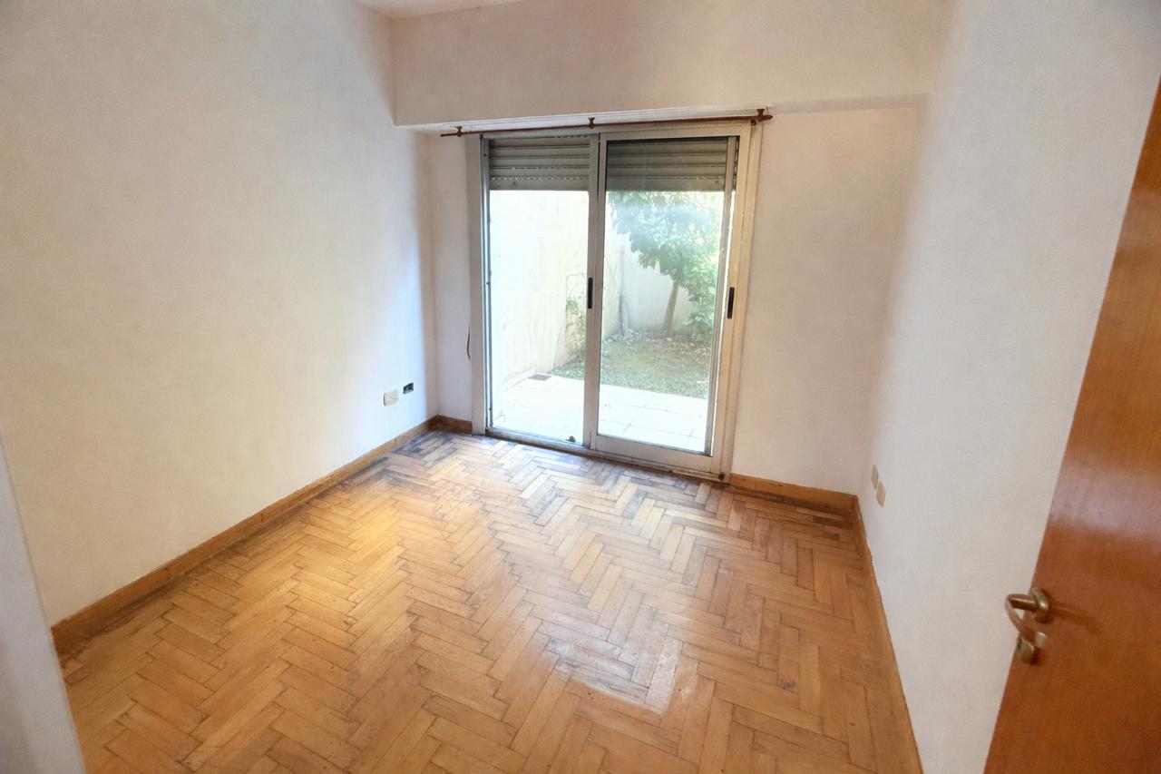 Planta baja. Primerísima calidad de construcción. Impecable excelente. Estar comedor, con la cocina semi integrada con barra. Dos dormitorios con pisos de parquet y placares con interior completo. Lavadero independiente. Baño completo. Todos los ambientes poseen puertas ventanas con persianas de aluminio anodizado. Cuenta con dos patios privados del departamento, uno de ellos con parrilla. Cochera techada, con acceso por portón automatizado. --- APTO CREDITO ---- Superficie cubierta del departamento: 65 m2 Superficie de los patios: 40 m2 Superficie de la cochera: 13,5 m2